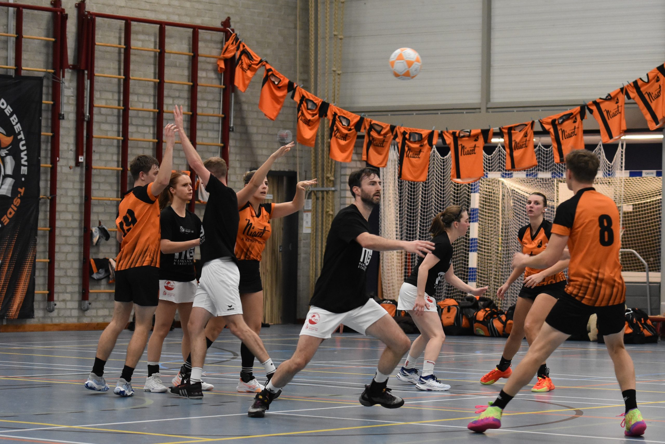 In een sfeervolle Betuwehal mocht het vlaggenschip van Tiel’72 daarna voor het eerst dit seizoen aantreden voor het eigen publiek. Samen met de jonge fans van J9 en de enthousiaste Kangoeroes – die met Tiel 1 opliepen als Team van de Week – was de toon direct gezet voor een mooie korfbalmiddag. De zaal was feestelijk aangekleed, de balsponsor staat klaar, kortom: alle ingrediënten waren aanwezig.