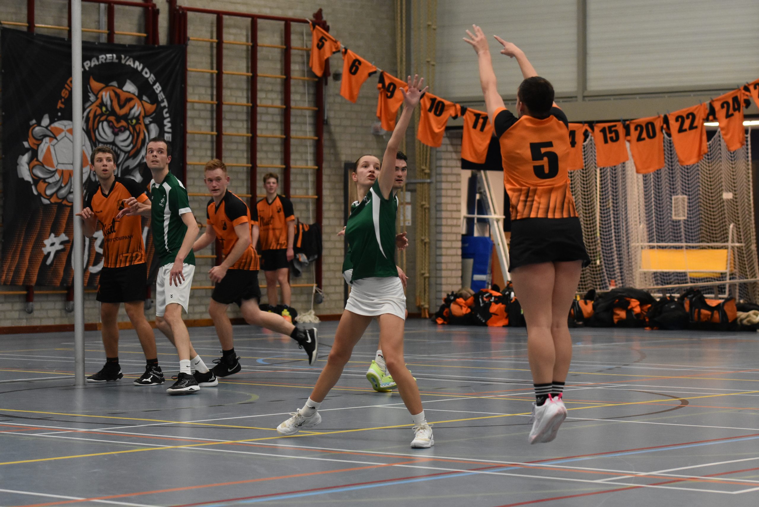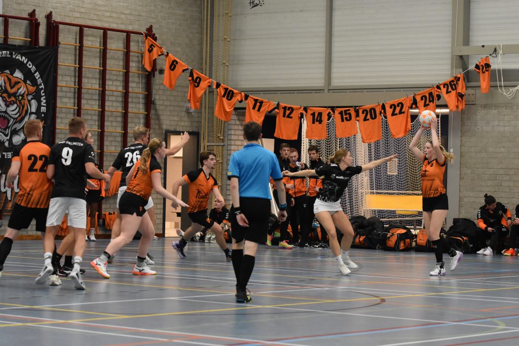 De start van de wedstrijd tussen Tiel 2 en Oranje Wit 3 ging gelijk op, beide ploegen scoorden om en om. Het bleek voor zowel Tiel’72 als DUKO lastig om door te drukken, want aan beide kanten werd er maar weinig gescoord. Toch wist Oranje Wit het gat van de korf net wat vaker te vinden dan de ploeg van coach Hielke de Rooij. Hierdoor gingen de ploegen rusten met een magere 3-5 tussenstand op het scorebord.